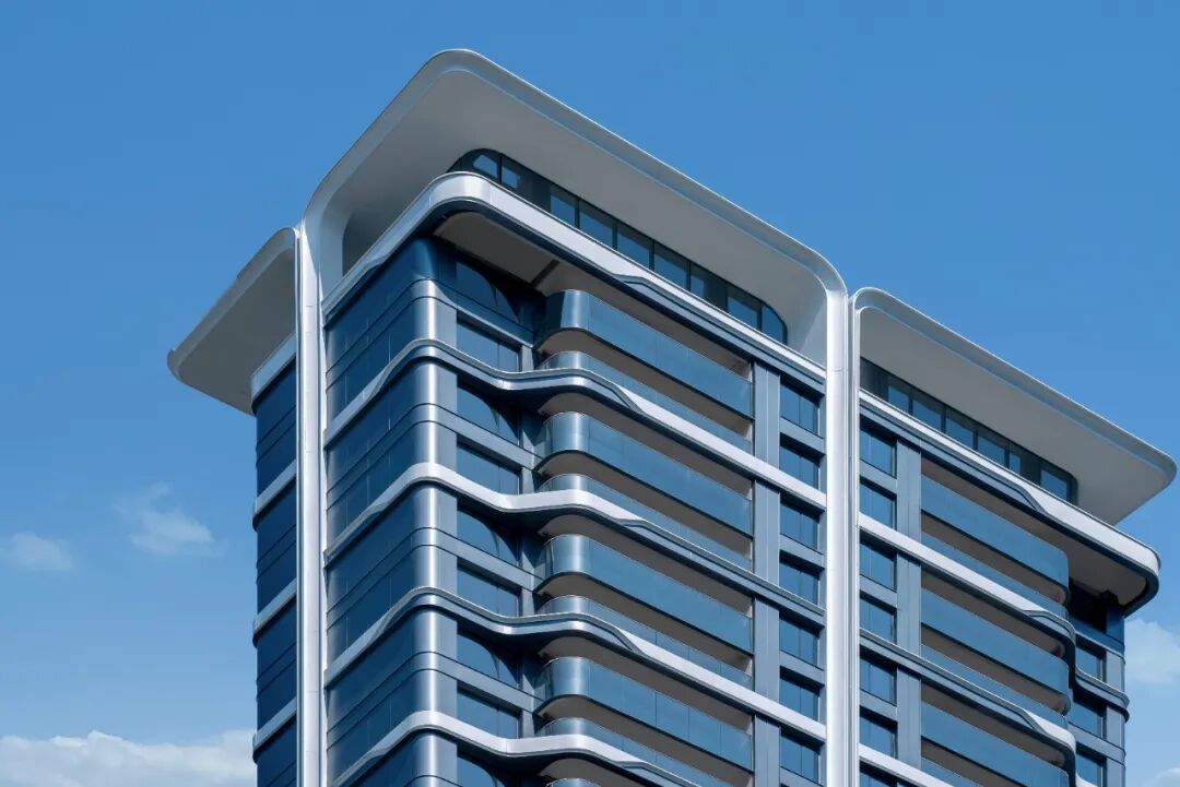D10天际「黑珍珠」立面采用圆弧转角与横向线条交融,配以皇冠式挑檐,并在中部设计“天际流光星带”,让建筑自然流向天空,产生立体感的视觉美学冲击,营造出“疑是银河落九天”的震撼效果,如钻石般的光感立面,只需一眼便过目难忘。