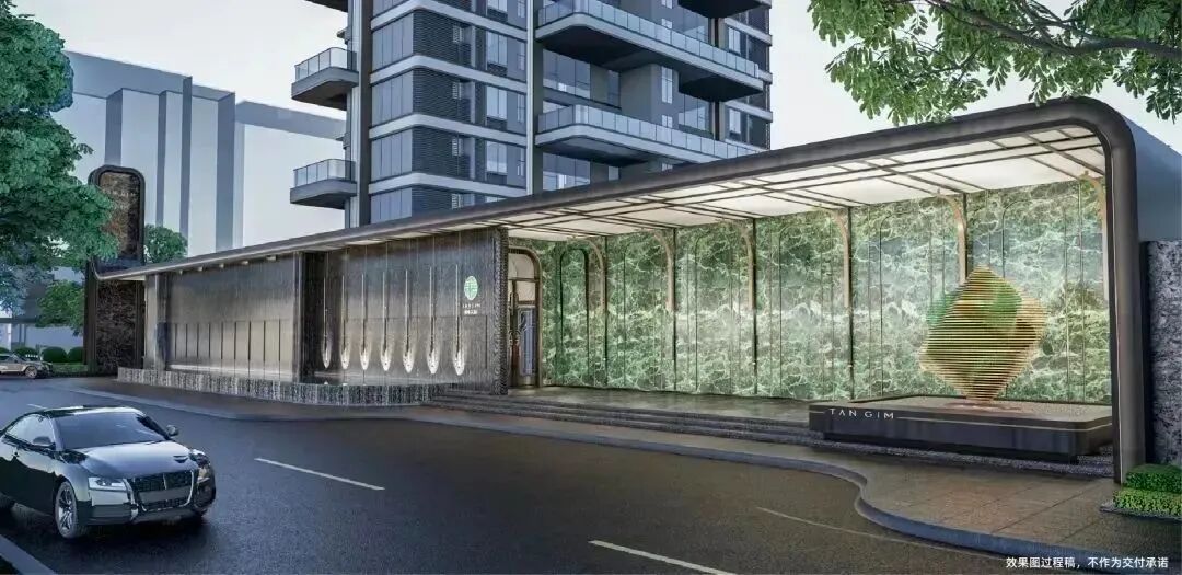 保利天珺以宝格丽酒店风为参考,用纯天然的奢石,打造了一个约60米的门庭。社区可以小而精致,豪宅的大门必须还是奢阔担当!