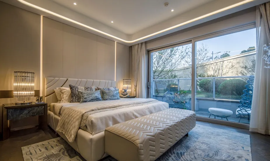 为打造尊贵怡人的归家环境,塑造美好社区生活,设计构建了一种独特的“酒店式的生活方式:53米超长酒店式社区入口,将仪式化、品质化、功能化、 便捷化、人性化贯穿于归家体系的每个角落,打造酒店式品质入户大堂,构筑归家礼仪空间。