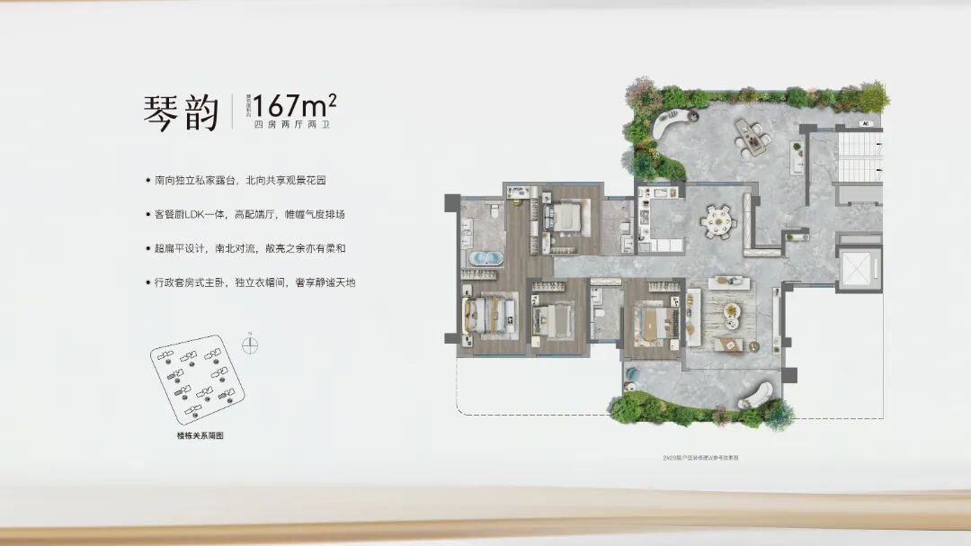 国贸天琴樾通过每层每户都有南向阳台+创新奇偶错层空中花园设计,实现观景、采光“平等化”,从根本上规避了奇偶户型的差距,保证了全部户型都可以实现很好的宜居效果。