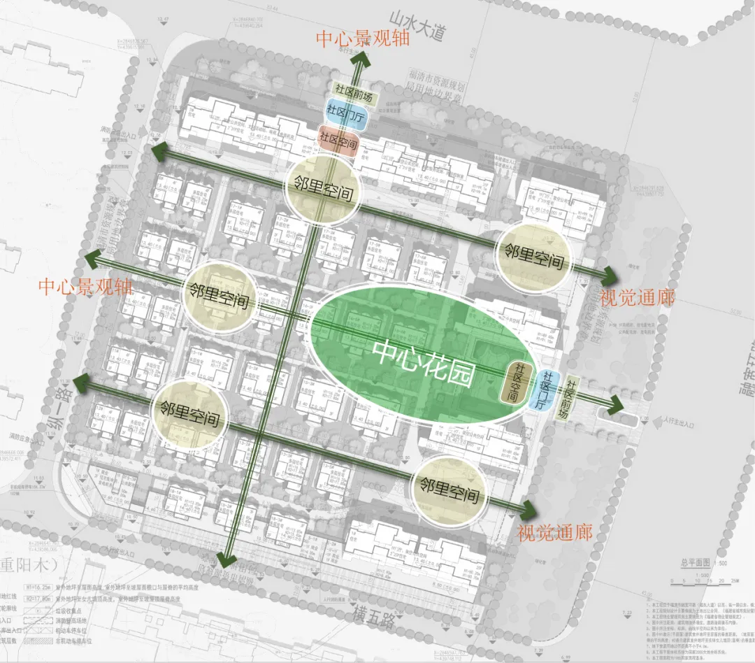社区共有8栋两梯两户主楼,南北各4栋,中间为39米X170米中央大花园,是区域拥有临湖景观且自带中央大花园的高端社区。