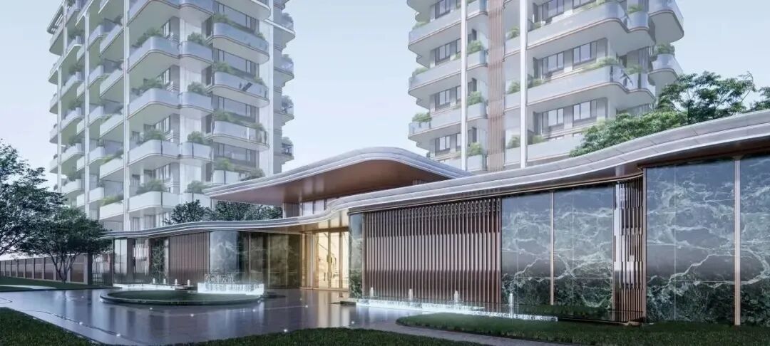 广宇设计采取元素符号景观提取转译,将景观元素应用于立面高层大线条处,通过再设计实现丰富观感;将古建元素应用于高层转角阳台,通过弧面玻璃反射效果,形成兼具传统美学与文艺美学特征的立面形象,影显项目的独特性和尊贵感。建筑长出森境,自然包裹立面,层层叠翠,筑就一座会呼吸的城市“森林”。