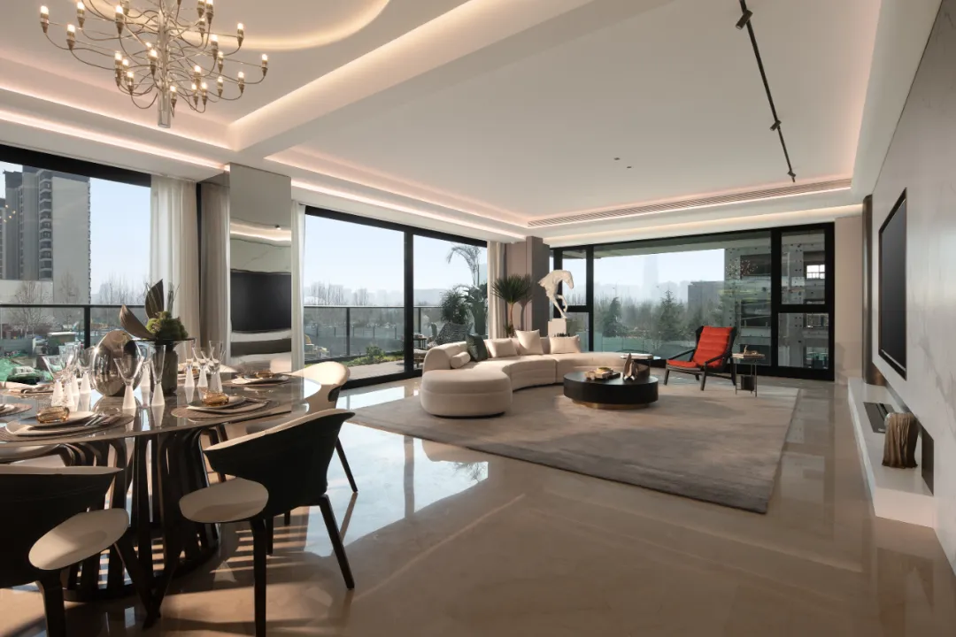 上层犹如“空中森林”,在平坦的场地里营造出一片“高台园林”,以中式韵味+现代简约两重风格,打造业主幸福居住空间。