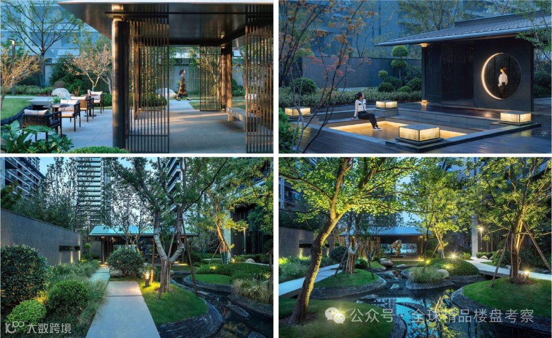从15米宽的社区大门到一进院落60米长的山水界面;从入口大堂内的一方茶室会客空间到二进院落的四水归堂中庭空间;从三进院落内近3米高差的山水庭院到四进院落近500平米的超大景观湖面;从五进院落的山水游廊到六进院落近700多平米的儿童活动空间等,进一步提高生活体验的丰富性。