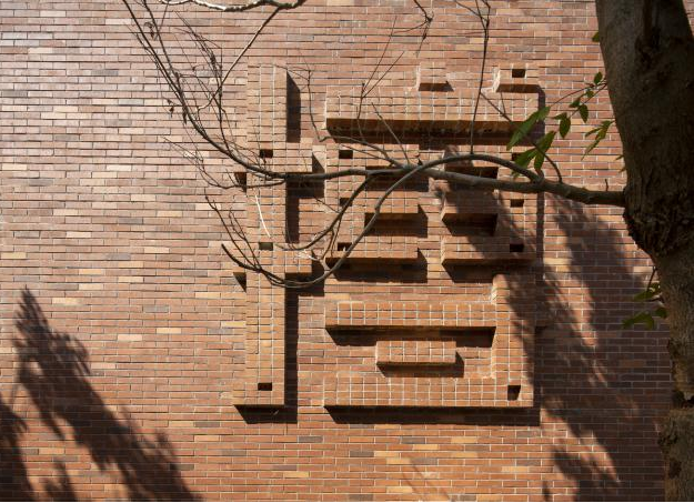 传统砖石建筑讲究磨砖对缝,将砖块突出的做法也是由此延续而生,中国的方块字可以非常自然的由一个个小砖块拼接而成,配合阴影轮廓可以迅速的辨认出字体含义以对应本栋建筑的具体功能。简练的设计手法却让传统文化非常具体的落位到建筑的细节之中。