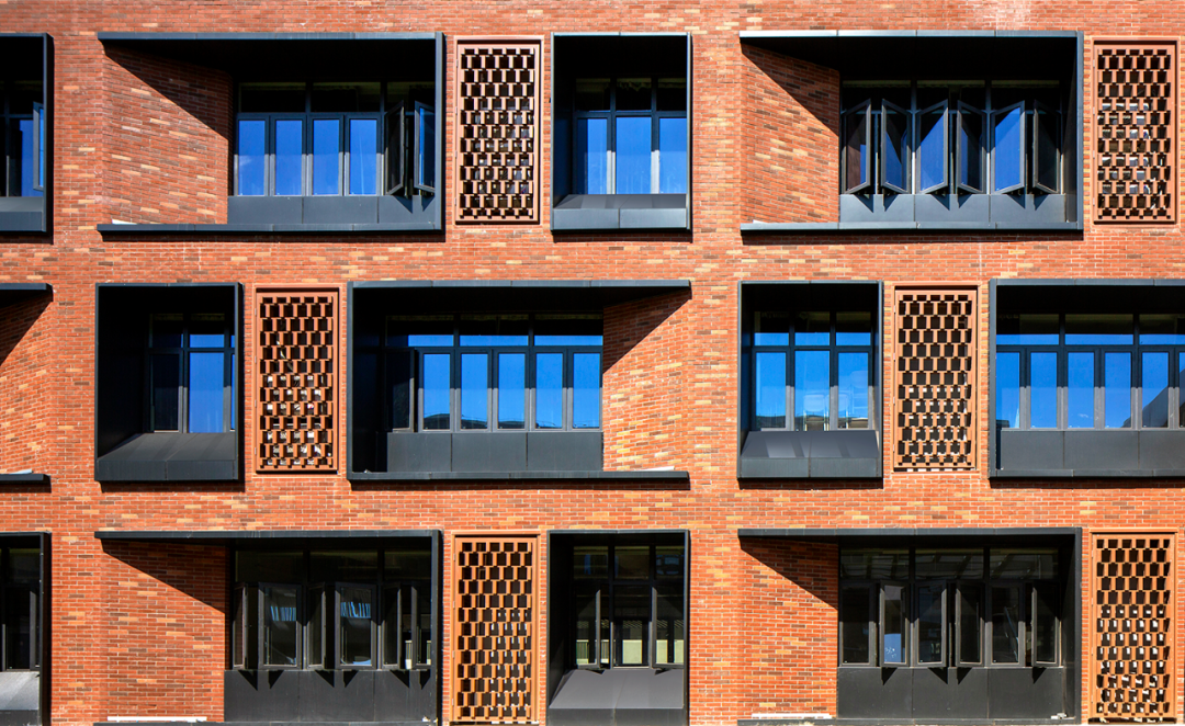 通过砖块的旋转穿插,形成富有韵律的,立体感强的表皮形象。