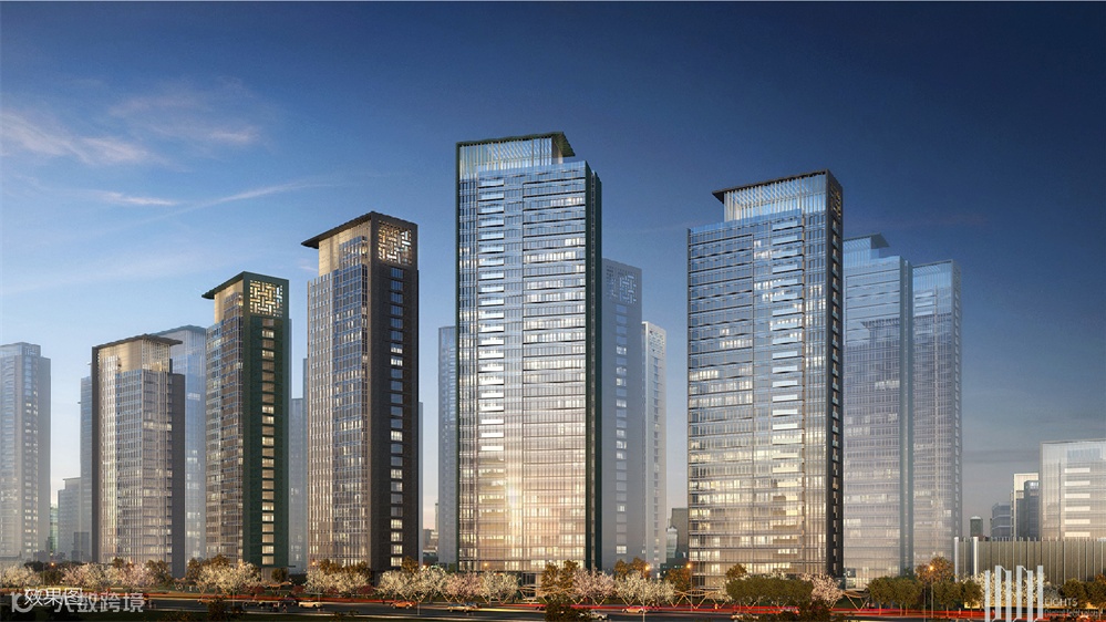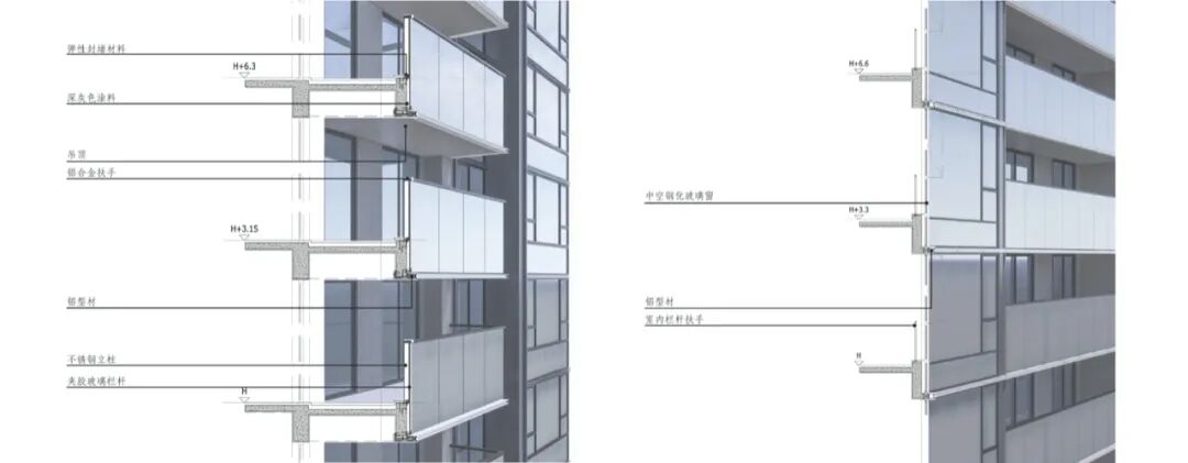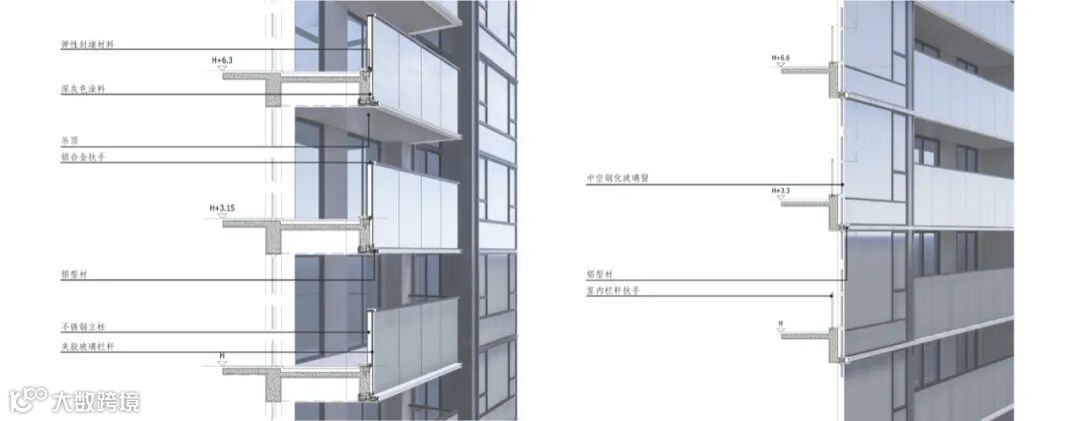 外立面材料使用类玻璃幕墙取代传统窗墙体系,实现360°IMAX采光,同时带来开阔的视野,与滨河公园无界过渡。