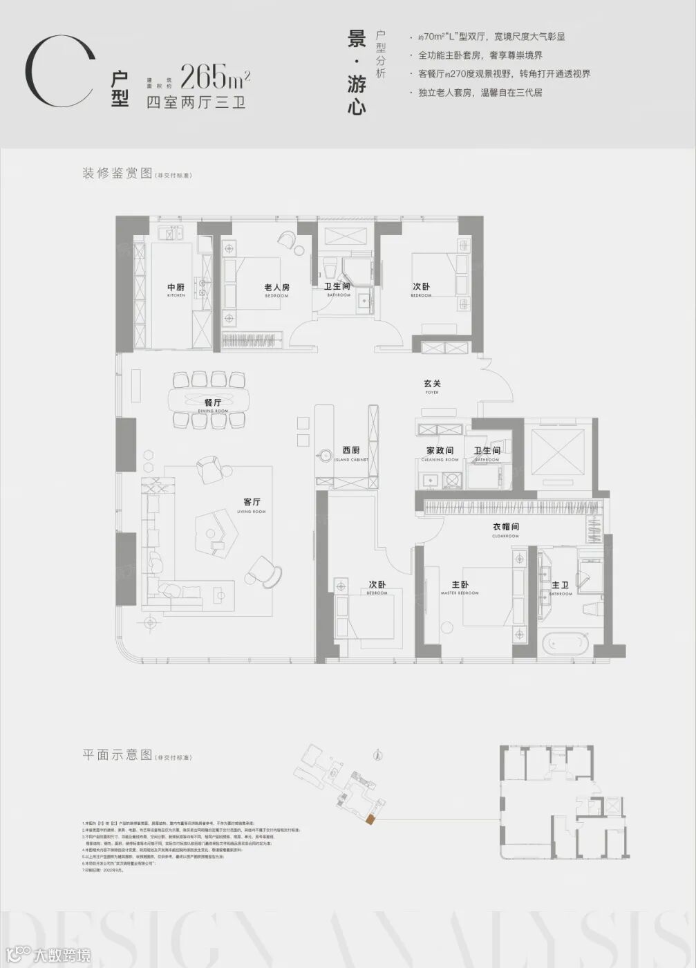 建面约272㎡户型,270°大端厅+L型大阳台,总统级大套间主卧,父母套房,中西双厨,足够有仪式感的玄关......这户型设计相当棒!