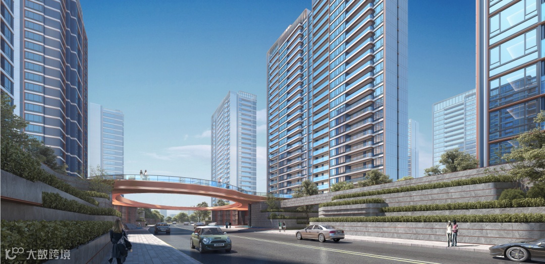约1600米全封闭风雨连廊+下沉式园林+全功能泛会所