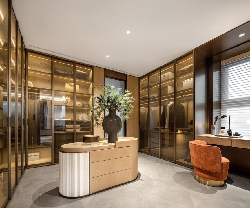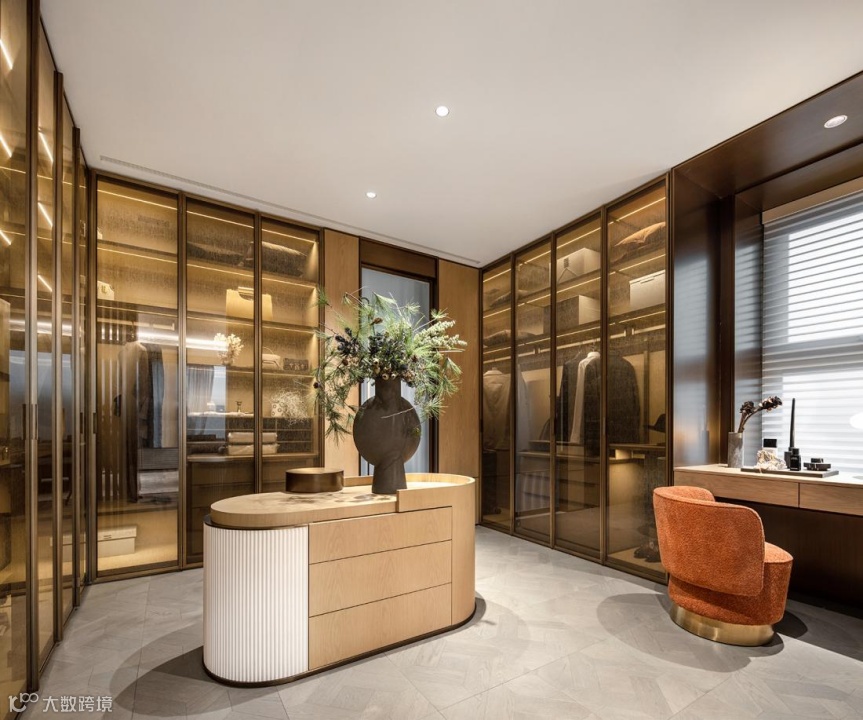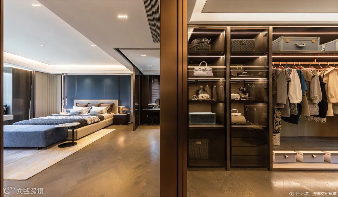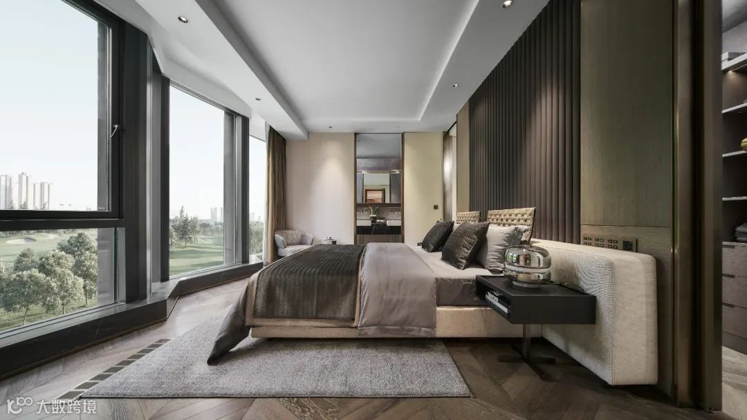 面积近60㎡的主卧包含了独立衣帽间、独立卫浴间、独立玄关入户等等配置,不仅仪式感满满,更能体会到户型的尺度奢华感,让居住品质得到真正的提升,夫妻两人可以关上门喝茶谈心,重温二人世界。