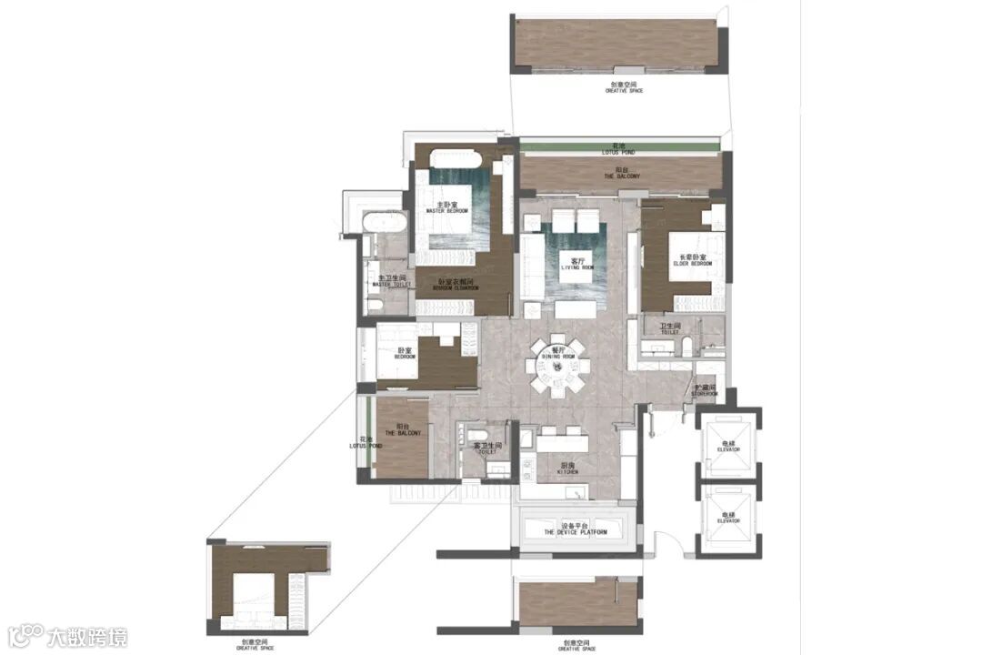 多套房设计,打造出一个高度聚合又能彼此独立的家庭化空间;