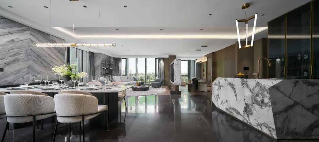 以世界知名艺术馆藏品为设计灵感,为空间融入丰富的艺术元素与艺术细节。同时挑选全球艺术石材,以自然勾勒的肌理,营造空间的艺术感。