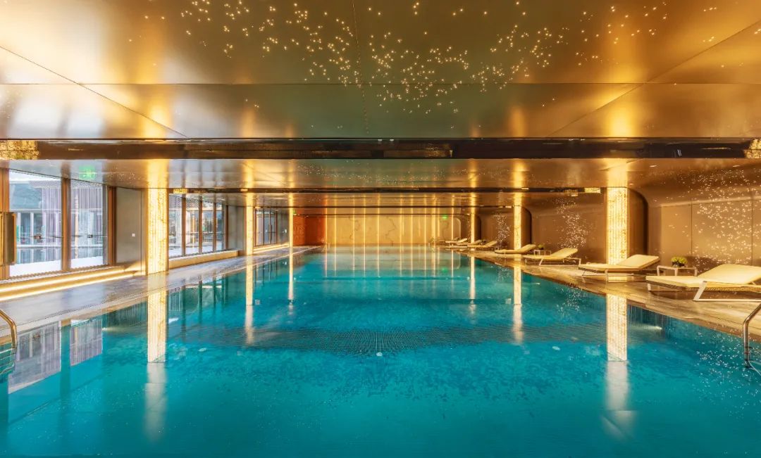 会所高段位规划了星空顶恒温泳池、水吧区、茶艺室、德州扑克区、桌球区、藏酒坊、私宴厅、健身房和高尔夫室等9大业态,业态之丰富。