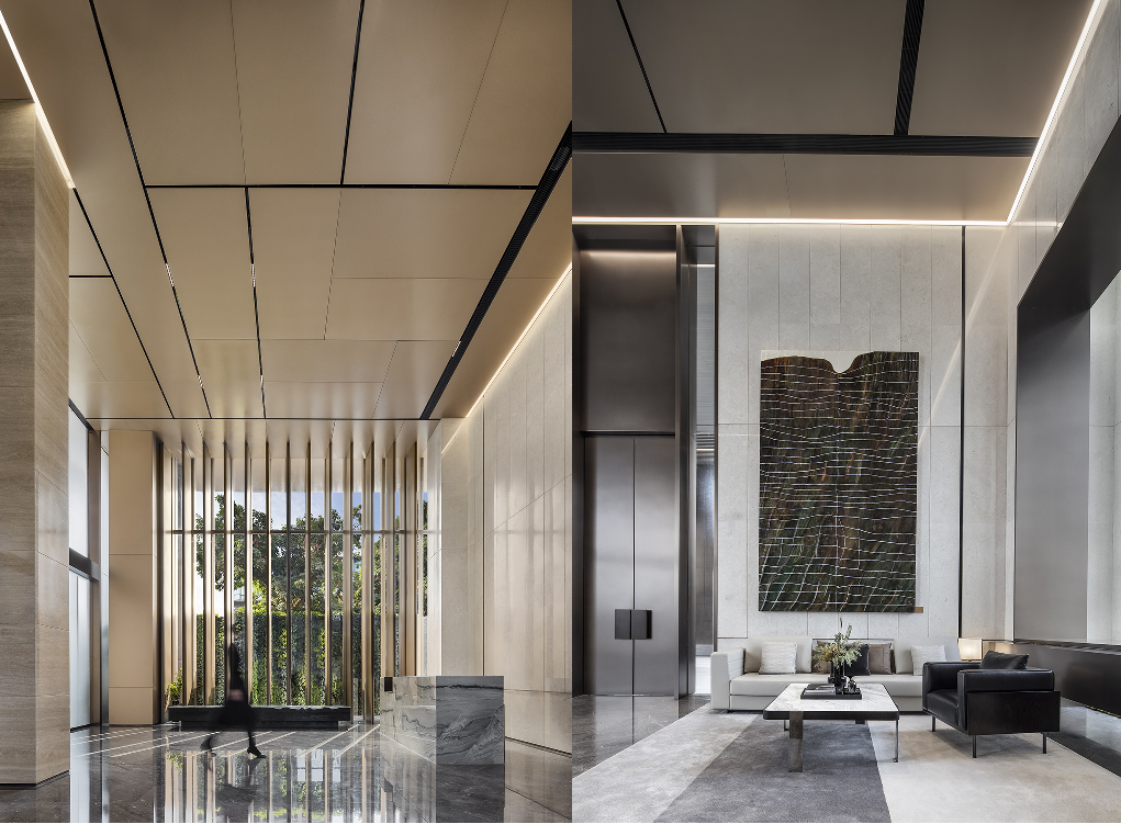 不止于此,项目地面地下均设计了酒店式入户大堂,地下车库也为精装配置,实用性和仪式感兼具,住在这里,从外到内,每一处都是视觉享受。