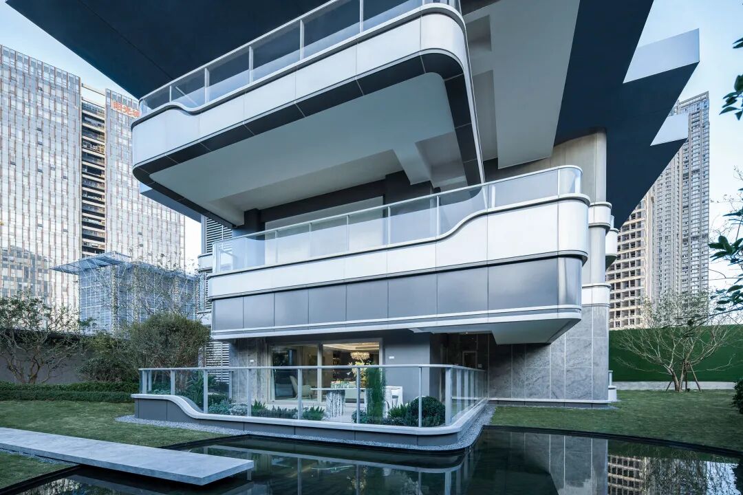 建筑风格十分前卫,用全玻璃天幕+铝板线条构筑了城市封面级的外立面,还在外立面上做出了许多圆角设计,不仅降噪保温采光性能更加优越,还融入温馨的生活感。