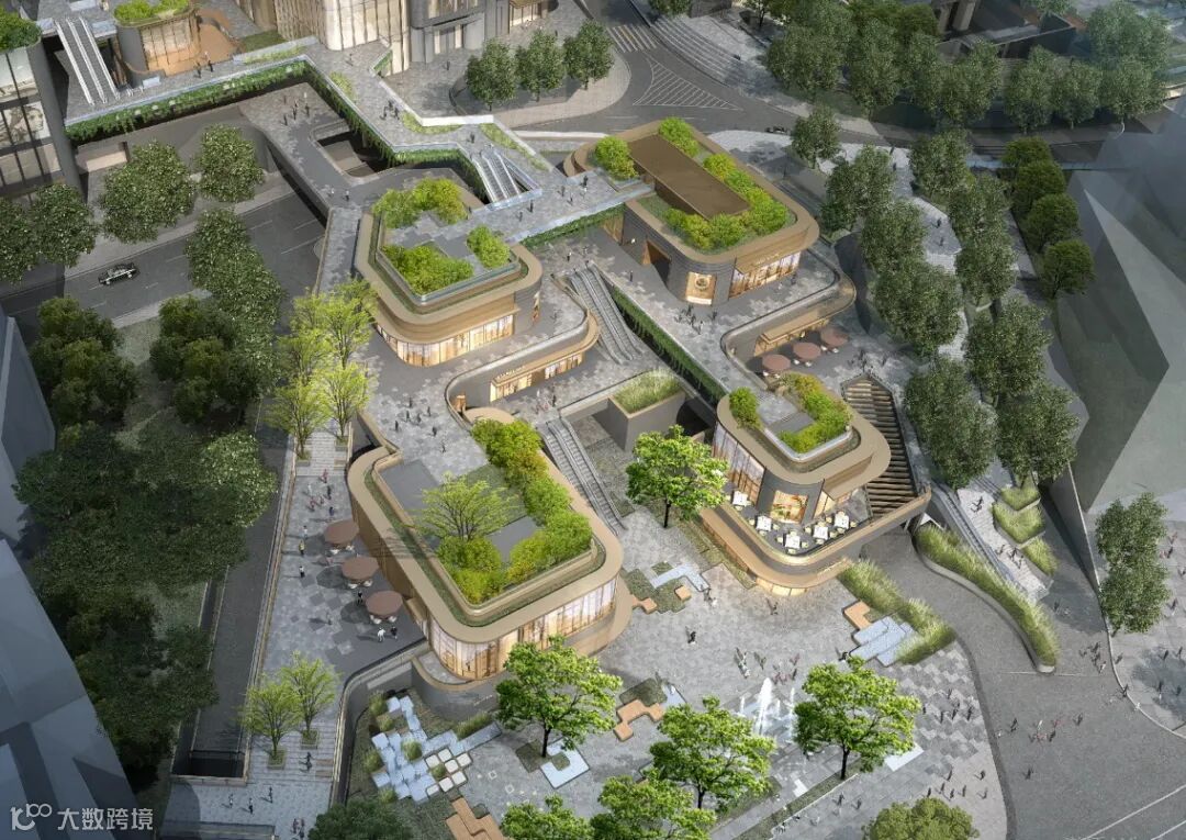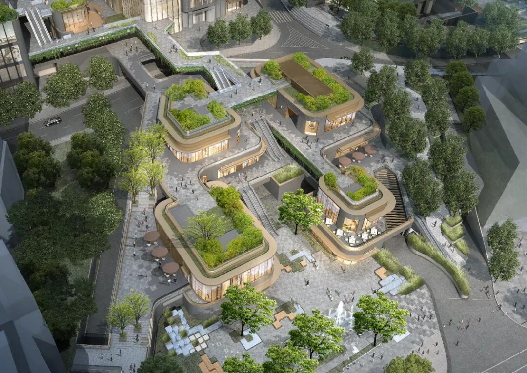 商业空间中连廊、梯步、天桥等,构成公共步行系统,融合商业空间和屋顶花园,创造商业与公园共生的建筑形象。以超越现在的眼光,在城市核心对话未来高定艺术私宅。