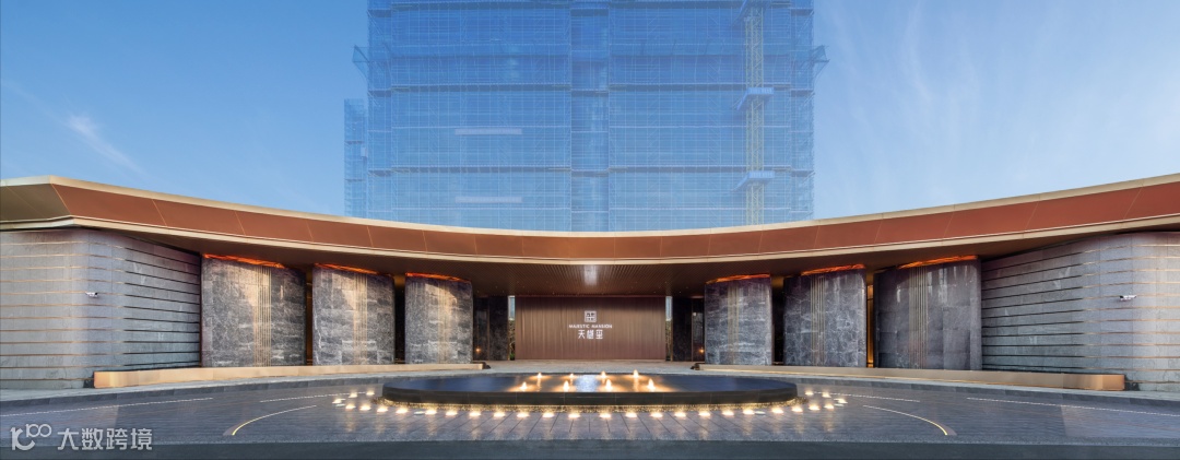 奢石门楼,它的净空高度超6米,整体跨度近100米!6根阵列的超大型“梭形柱 ”,以定制的爱马仕弧形大理石包裹,每根要5-6个成年人合抱。因石柱太重,每根都需要单独打地基。仅大门就动用3台吊机,耗时7天才完工。据说若大门整体完工,总成本要花近亿元!