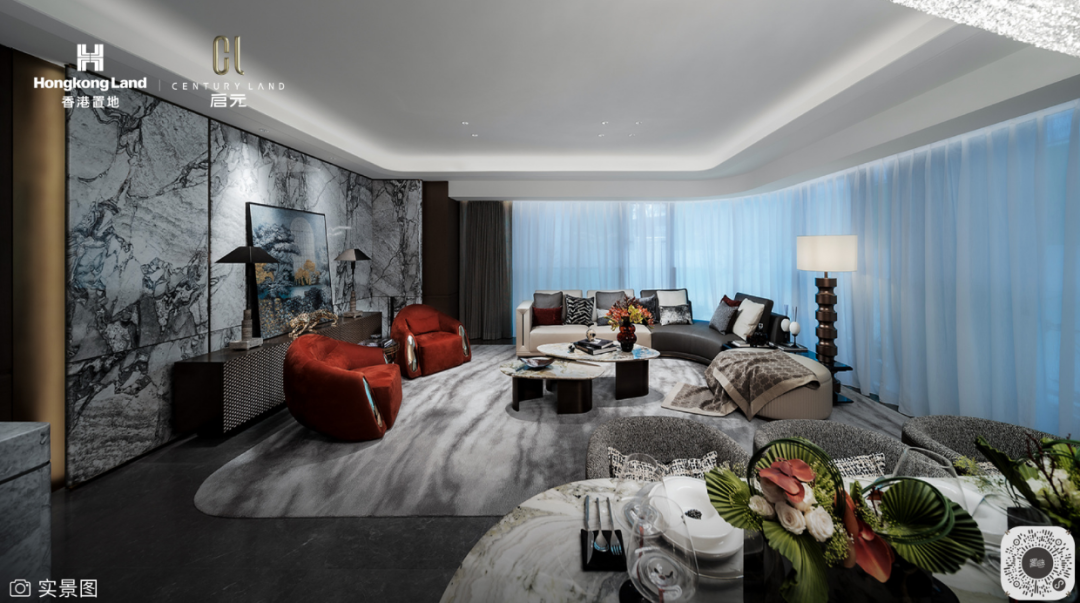 启元还打造了弧面转角端厅与超大面宽尺度,让业主在天空之上尽揽极核画卷。香港置地启元还创造性地打造了室内空中花园场景,营造私属的自然艺术秘境。