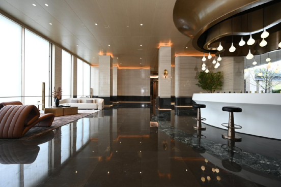 旭辉·铂悦湘江将美学、质感融入公区设计中,打造更具尊崇感与仪式感的双入户大堂,赋予双倍尊崇的归家礼遇。地库星空顶泛大堂、全环氧地坪漆、铝方通吊顶等设计,营造出高品质归家场境。
