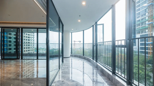 对标国际化社区,天樾玺以通透璀璨的玻璃幕墙结构,通过香槟金色铝板勾勒边界,创造出简洁舒展的线条,超高窗墙比设计,有效提升视野与采光。