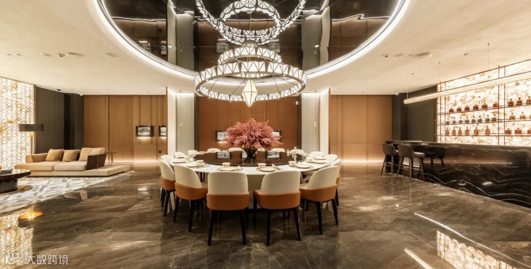 特别是负一层,做出了约2000㎡宝格丽风下沉式会所,挑高约5.1米,将奢华质感拉满。