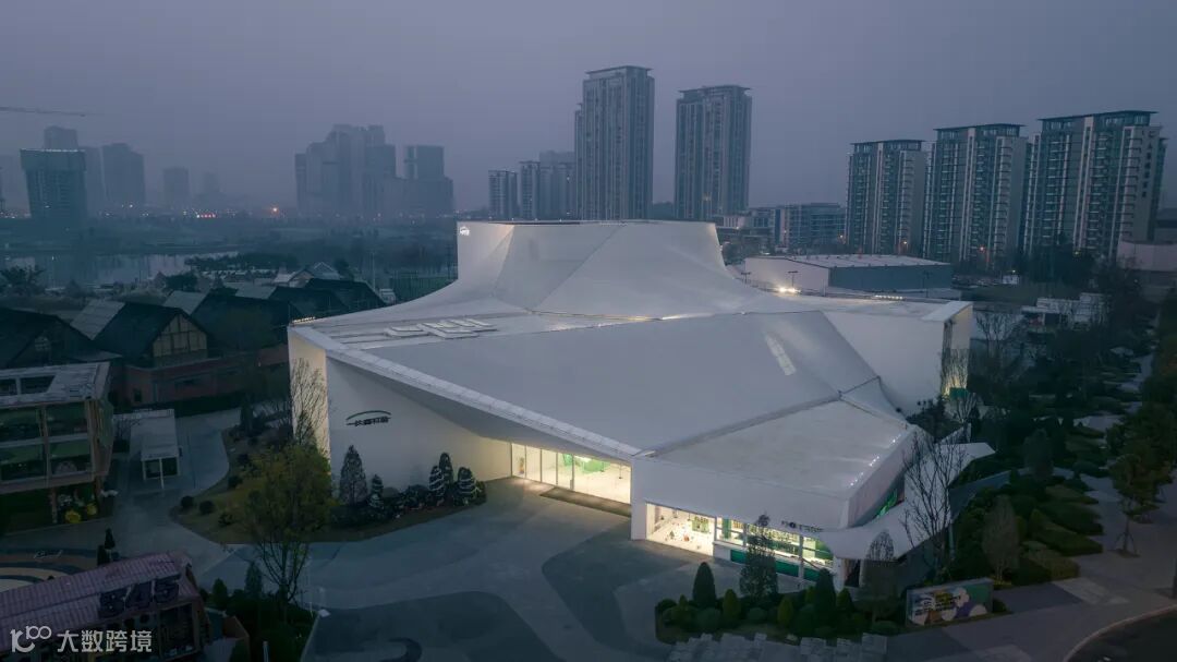如一的方法。日常发出提示,反常带来吸引,是我们一直为之着迷的探知方法。规则的盒子形体是建筑最常见的表达样式。一个长宽高超过几米的立方体,只要开一个入口就很容易让人联想到这是可以进入的房子,它用自身的日常性向人们发出提示:这里是一个空间。若干个盒子分散摆放在一起,则会成为最常见的展览类建筑样式。当这些分散的盒子被张拉膜包裹成一个整体时,包裹之下,锋利又柔和的建筑边界则变成了反常的吸引,这座纯白的建筑形体如同一座突然漂浮至此地的冰山,为大众带来熟悉又陌生的建筑体验。