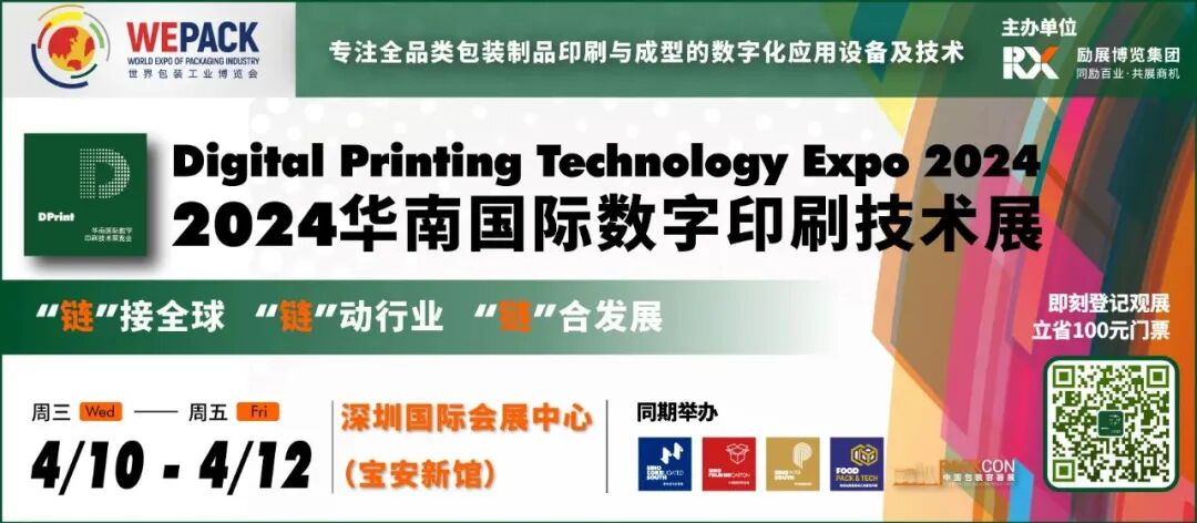 2024年4月10-12日,WEPACK世界包装工业博览会旗下包装系列展-2024 华南国际数字印刷技术展览会将在深圳国际会展中心(宝安新馆)盛大开幕!