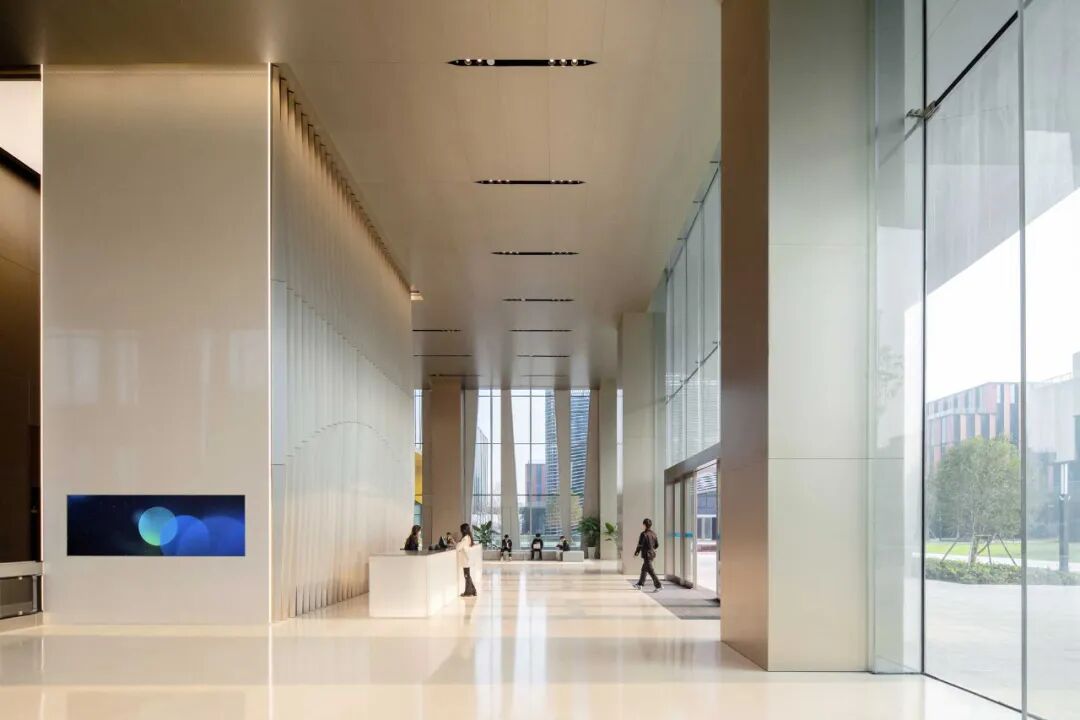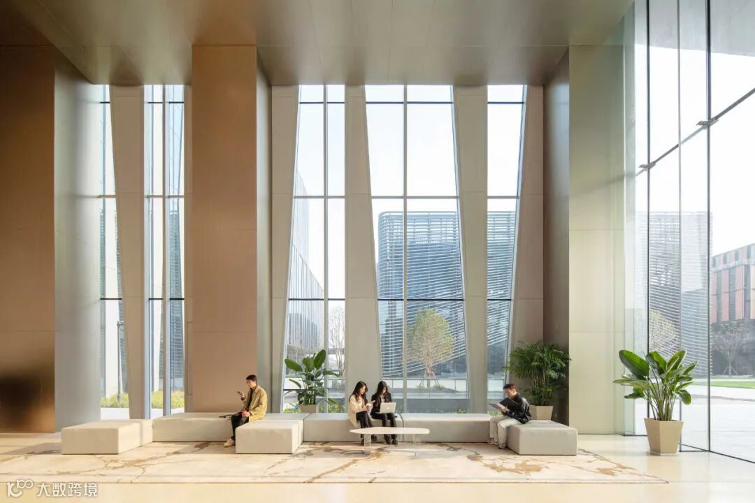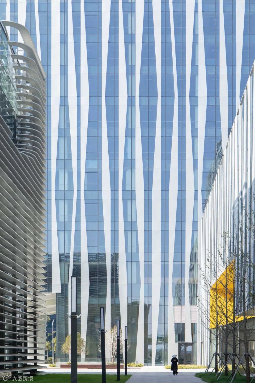 人体尺度是细腻优雅,城市尺度是美学价值。灵感来源于与古文“水”字,高层办公塔楼在浅色玻璃幕墙上塑造出抽象的水文肌理,几种玻璃模件变形重组的模数化的玻璃分格,立面设计变化丰富有序,是东方文化与诗意相融。表达着自由与节制,进一步将海洋元素融入城市肌理,为奋斗在海洋高新产业的人才营造文化归属。“细微到建筑的每一个构件都会经过仔细比选”,这是项目的建筑师坚持,积小凝大的道理在各行各业共通。