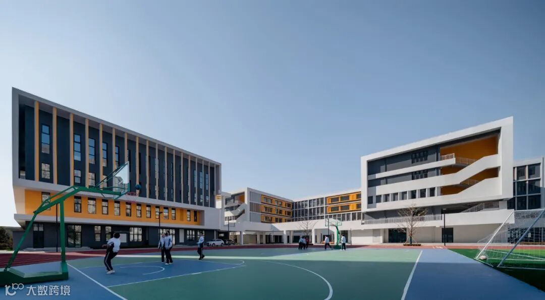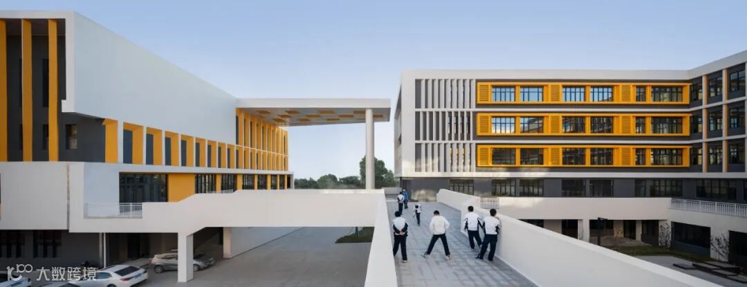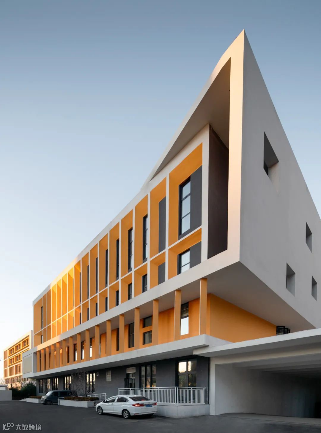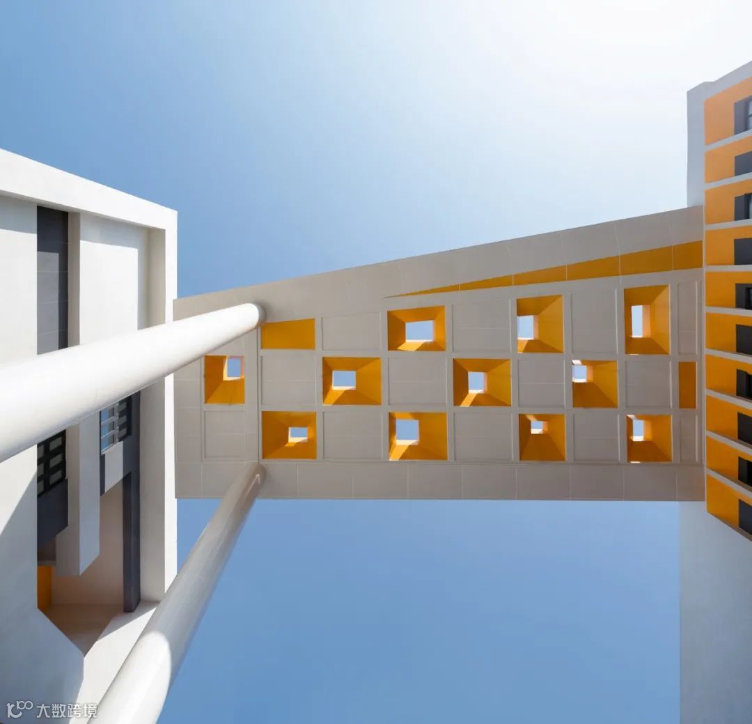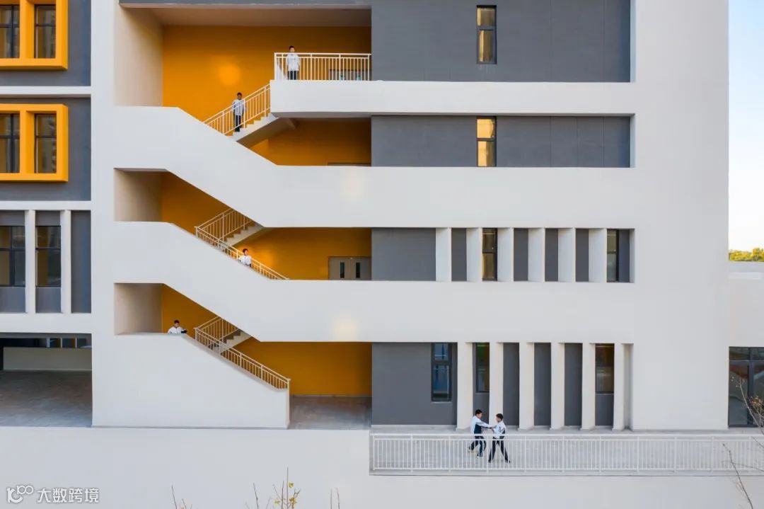 校园整体并没有采用过多的色彩,整个校区仅采用了橙色,白色和深灰三种主色调,大面积的使用橙色,则象征着每一位学生校园生活的“金色年华”。