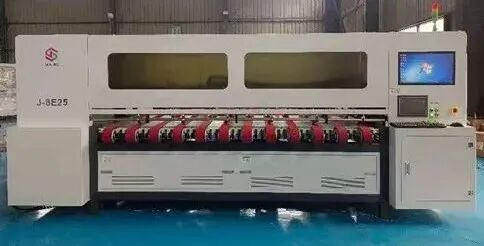 YJ-DP2500-8A+扫描式瓦楞纸箱数码印刷机,采用数码喷墨印刷技术,专用水性墨水。印刷宽度可以达到 2500mm,长度不限。印刷速度更快,可达 700 ㎡/h,每小时产能在 1~600 张左右。印刷精度高360*600 DPI,喷头数量可定制。性价比高,适合个性化、定制型的中小批量订单,俗称散单王。