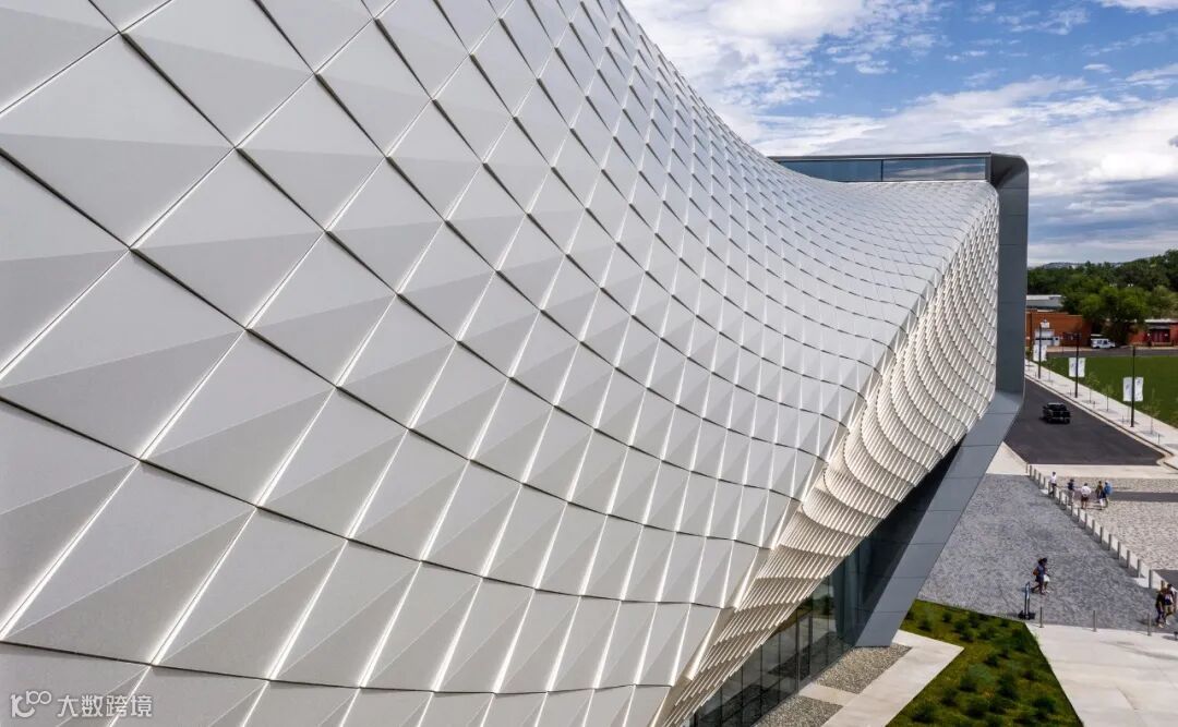 金属铝板的材质,大家可以想想阳光洒在立面上的感觉,瞬间整个建筑“亮”了起来,是可以做到熠熠生辉的效果的,整个画面感会非常的强。