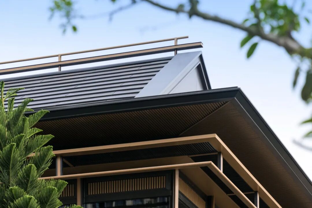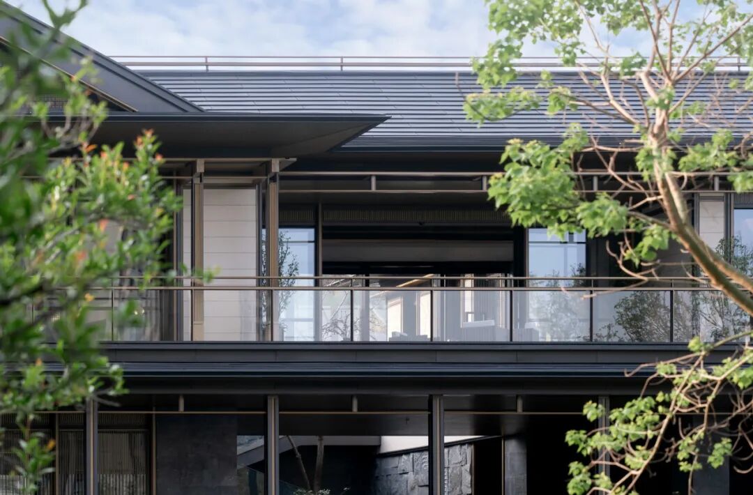 屋脊设计取消了传统戗角装饰和鸱吻的符号,完全使用现代语言及材料进行表达,呈现纤细感、水平感。