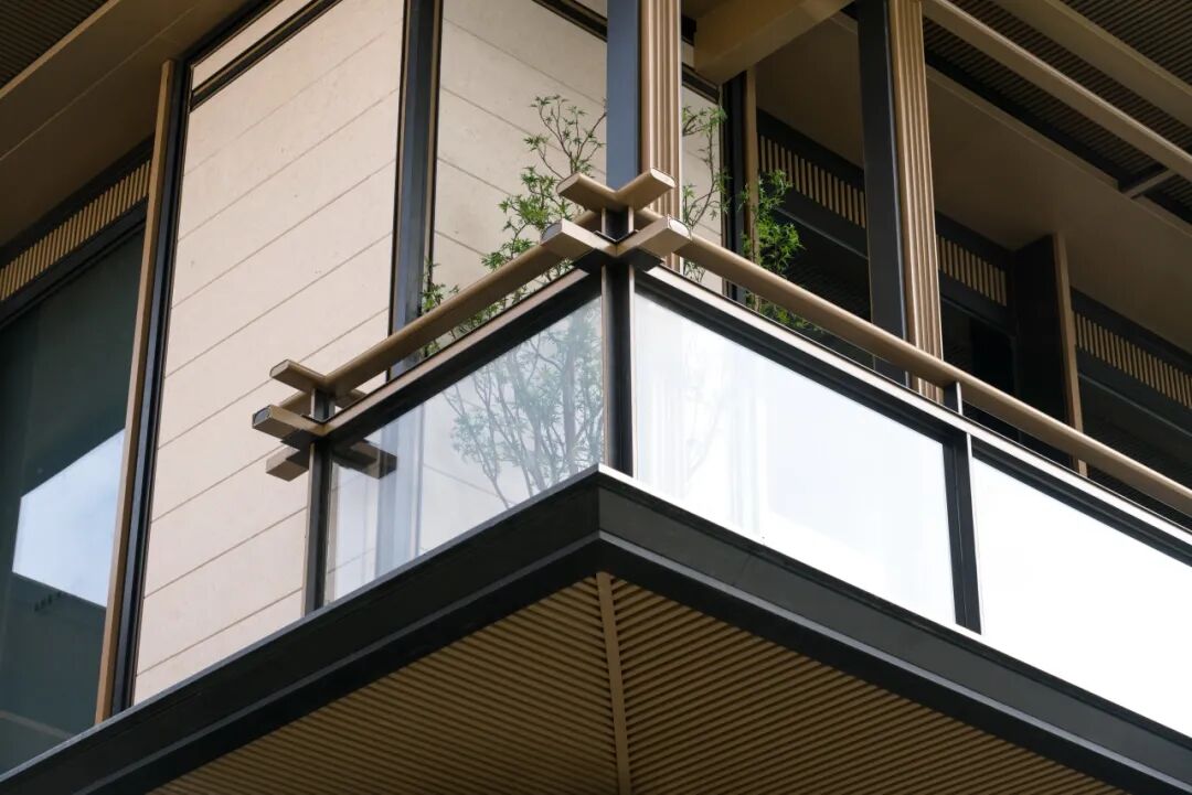 寻杖在转角望柱搭交而伸出,研究宋式建筑中的栏杆,用现代设计语言打造定制化极简的双层绞角造。