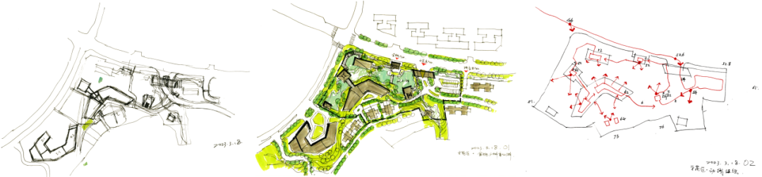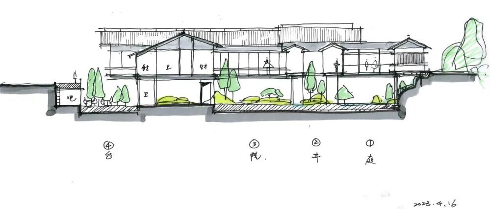 造一幅可游、可行、可望、可居的溪山行旅空间,转译山居雅集的新生活范式,在面向西南侧的城市界面,再这里造一处在山水石里长出的房子,融于山中的房子,一处到达即行旅、生活即雅集的山居。