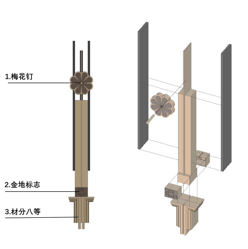 “以材为祖”等比级数划分,重构装饰纹样,结合现代手法和材料,打造全新的现代宋风符号。