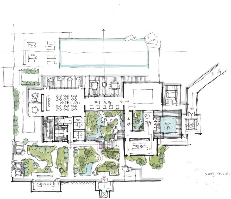宋代“诗书画”代表了一种文人风雅,设计对宋式风雅生活方式和园林建筑审美范式多有借鉴,传统与当代对话,在一定层面上,寻求从“物理空间”到“人本精神”的回归。