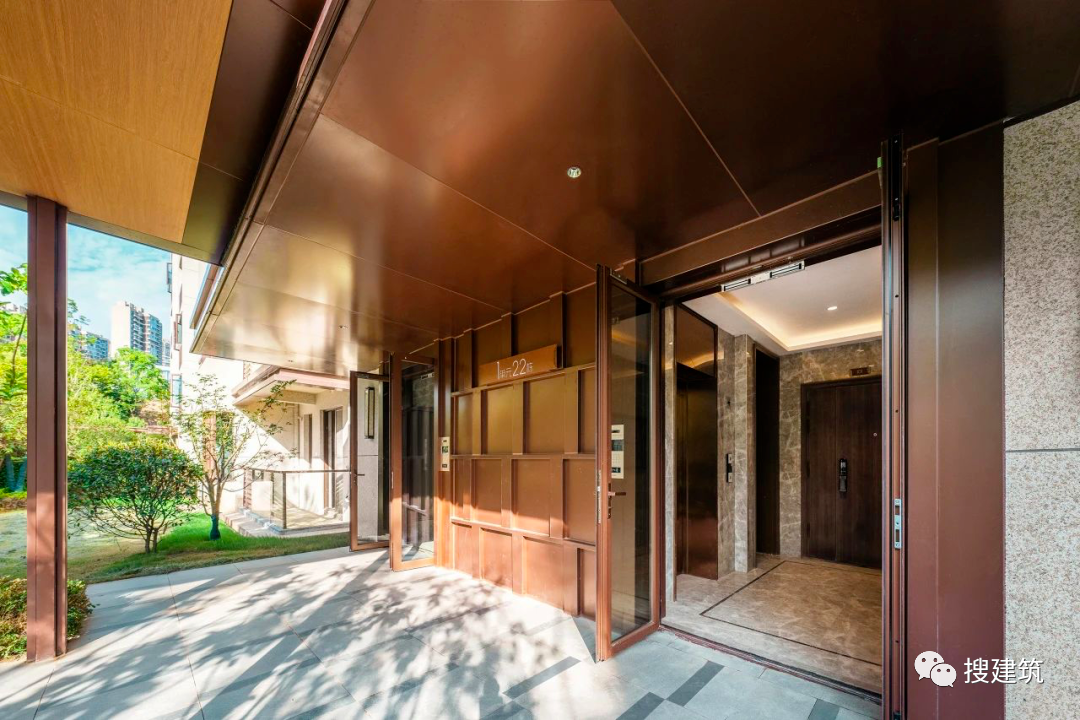 建筑外立面运用了大面积的落地窗,超高窗墙比之下配以深灰色金属型材,屋顶挑檐为深灰色铝板,奢雅大气、极简现代的建筑,它还是第四代住宅,将庭院搬到空中,形成了“垂直森林”的惊艳效果,它的花园不仅仅分布在社区地面,更是立体化地分布在楼体之上。