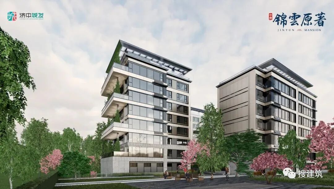 济南中博·锦雲原著项目最大容积率仅有1.5,纯低密洋房社区,规划12栋住宅楼,全部是5-8层的洋房产品。