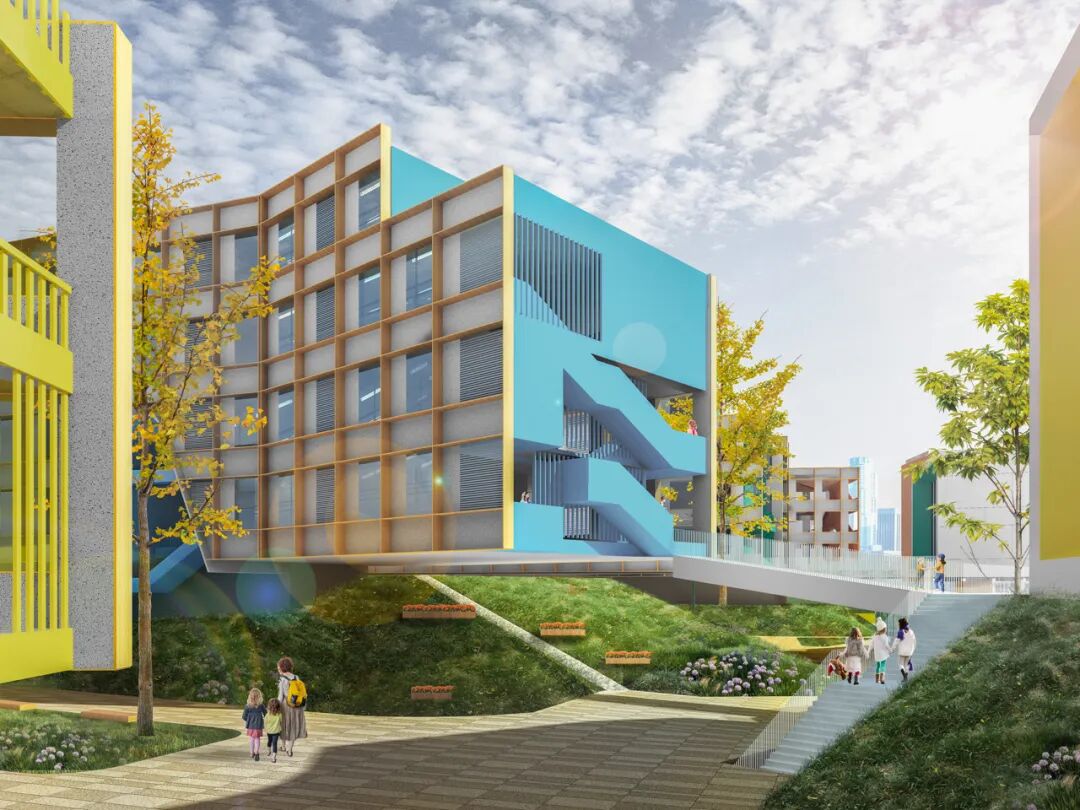 近日,由零壹城市建筑事务所(LYCS Architecture)担纲建筑设计的衢州高铁新城第一学校正式开工。项目位于衢州常山路,总建筑面积约67,500平方米,是一个包括36班小学和18班中学的综合性建筑项目。