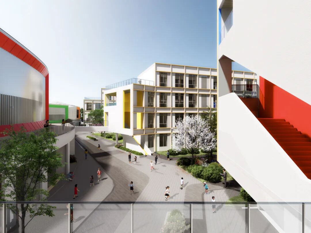 The change of cognition of "Learning" under the trend of diversified education emphasizes establishing a compound learning space on campus based on students' behavioral needs. The innovative design of the NO.1 school project in Quzhou High-speed Railway New City introduces the concept of "campus streets," extending and connecting multi-level activity spaces and informal teaching spaces, creating a world for students to meet and grow freely on campus.