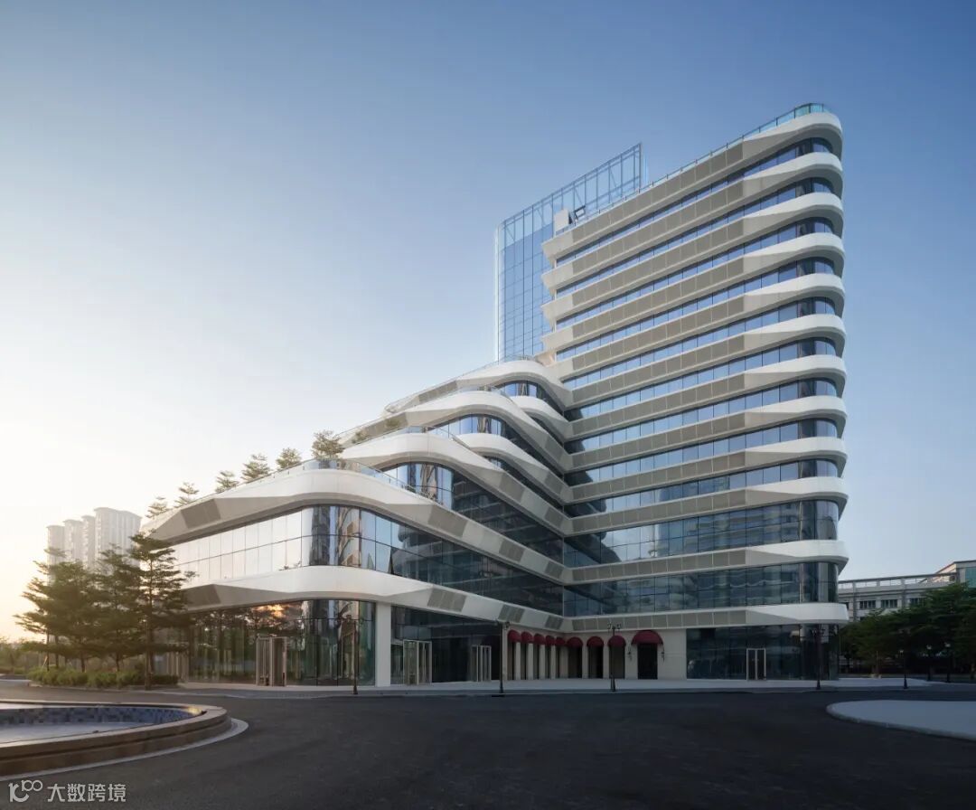建筑师以“退台”这一形式将静态的建筑与动态主干道的矛盾关系巧妙化解,更突出其标识性的特质。在后期的运营阶段,“退台”的设计更能契合“新经济”的4k影音制作基地的需求,也激活了建筑外部的空间死角,赋予这些空间各类新的社交功能。副楼在场地四周留出尺度恰当的小型广场,具有强引导性的弧形界面展示“新业态”的开放性,吸引人进入、漫游或停留。