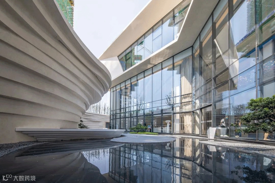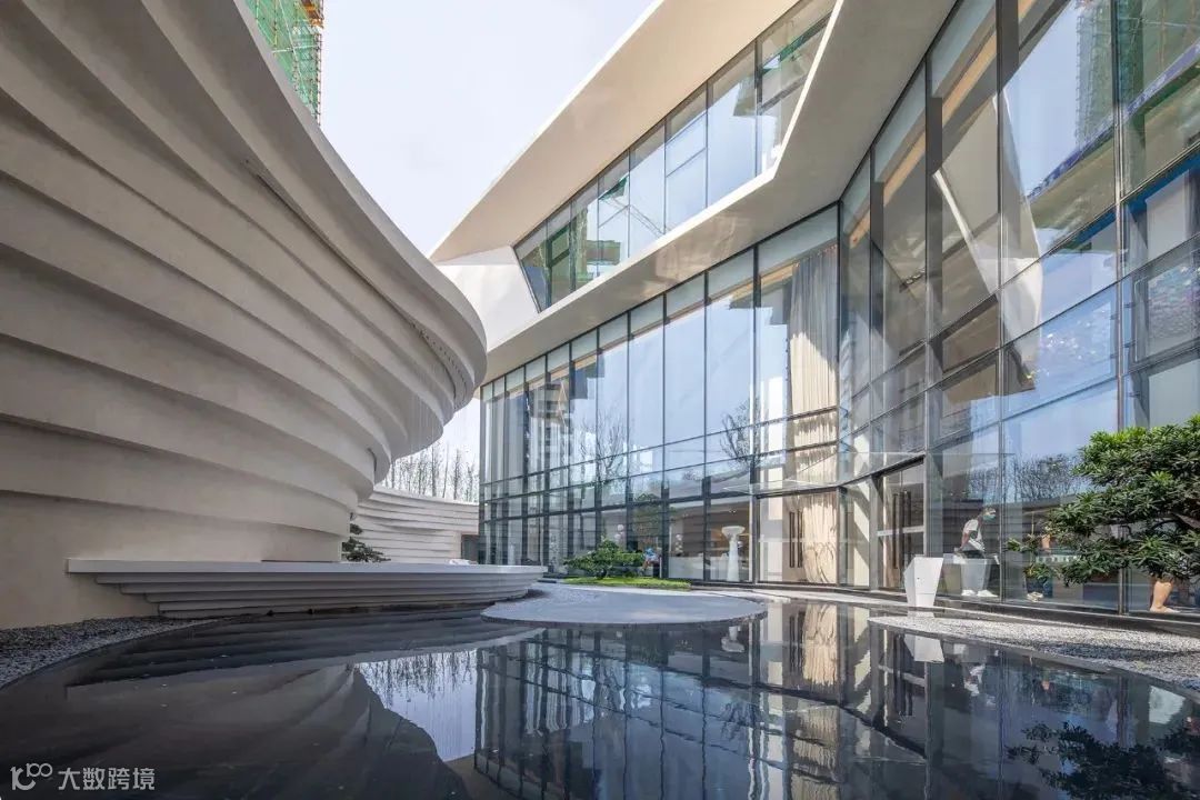 合肥旭辉·铂悦天汇让出了城市绿地,将建筑退到地下,结合下沉式景观,通过顶部层层叠合,形成层叠的曲线变化,给人耳目一新的视觉感受,成功打造出建筑、景观一体化的下沉式售楼处。
