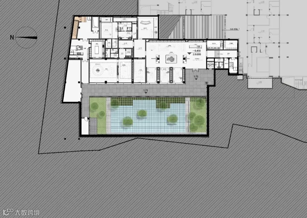 华润置地大连瑞府社区中心该项目采用经典的轴线布局,大门,社区中心及下沉会所,形成层层递进式的两进院空间布局。