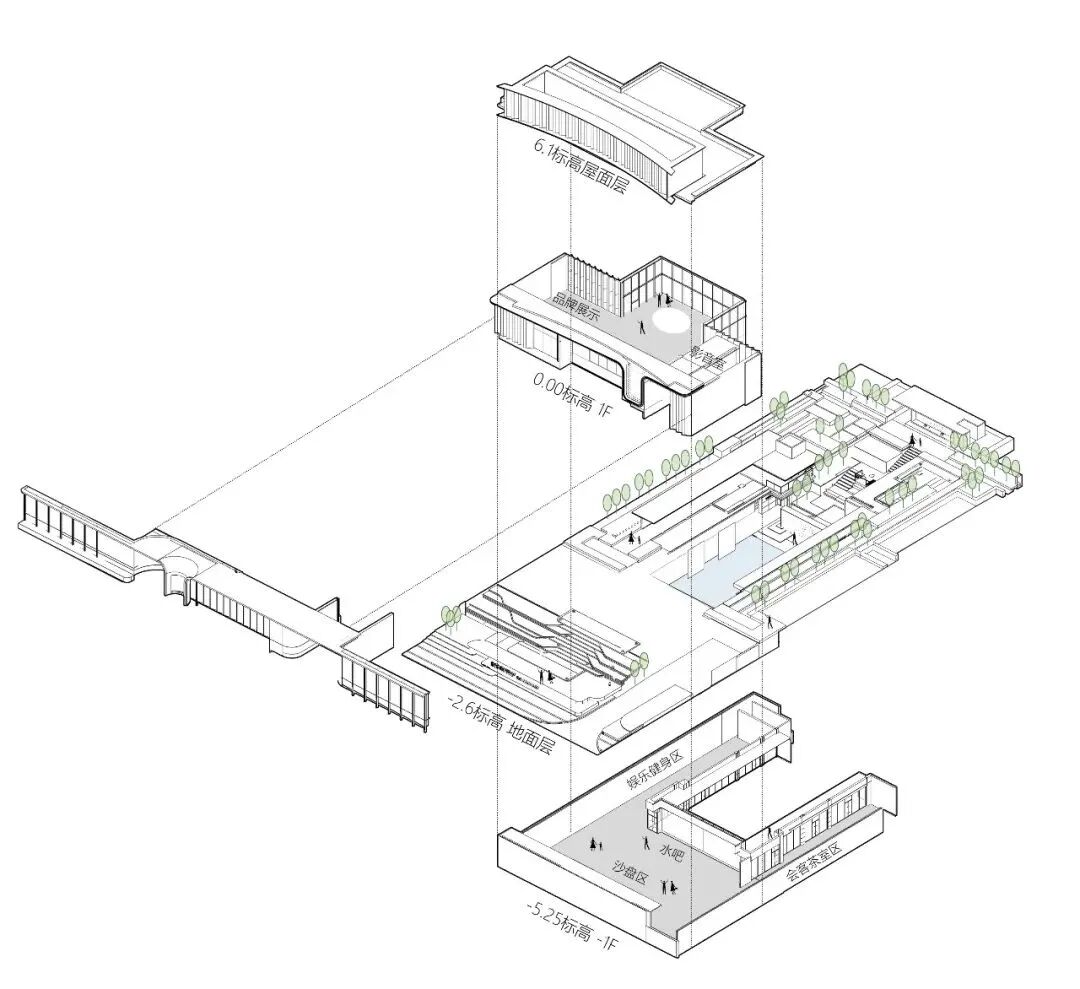 下沉庭院空间不仅仅可以用来提升整体景观效果,还可以利用此空间打造丰富的活动场地。