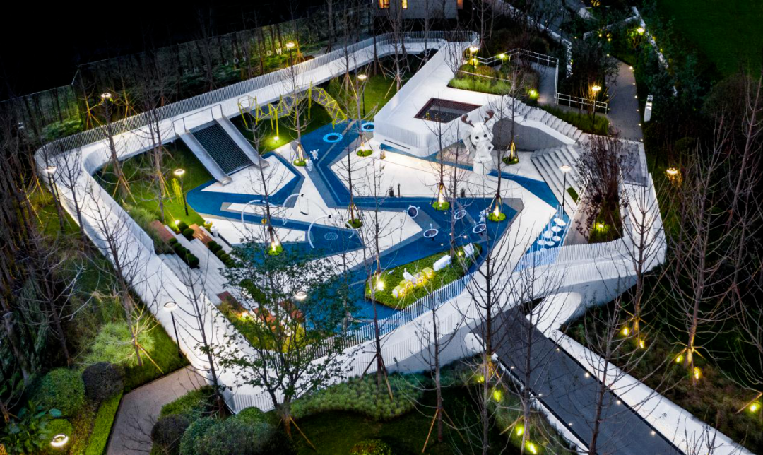 比如成都旭辉恒基·江与山近8米下沉高差,超80米横向跨度,给予无尽的创作空间。作为一期社区核心景观中庭,承载着儿童嬉闹、邻里社交、业余休闲等多种未来生活场景。