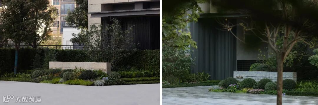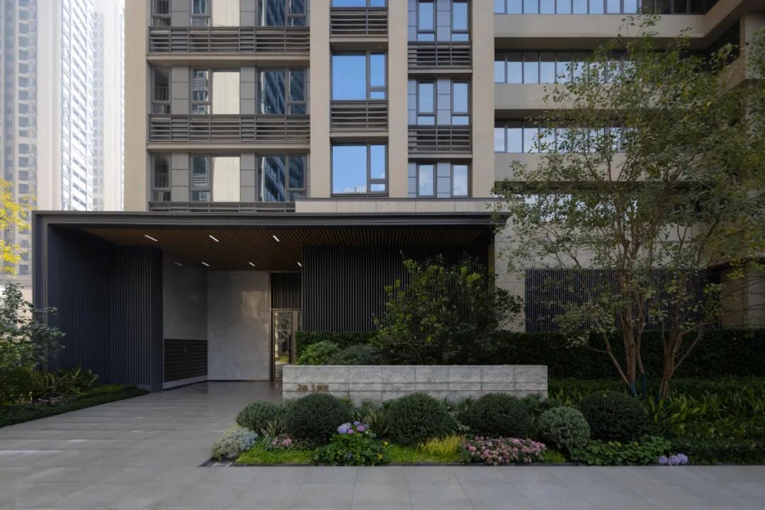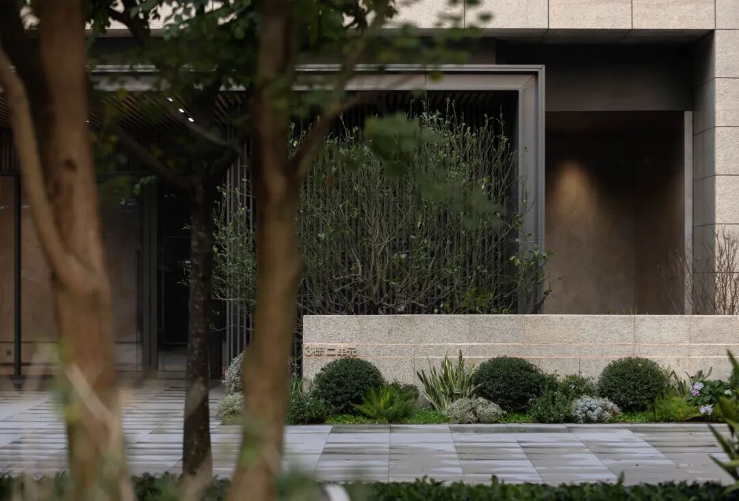 极具仪式感门廊、Logo景墙、植物造景等,赋予单元入户空间丰富多维的感受。愿居者能在这里卸下疲惫,回到家的港湾。
