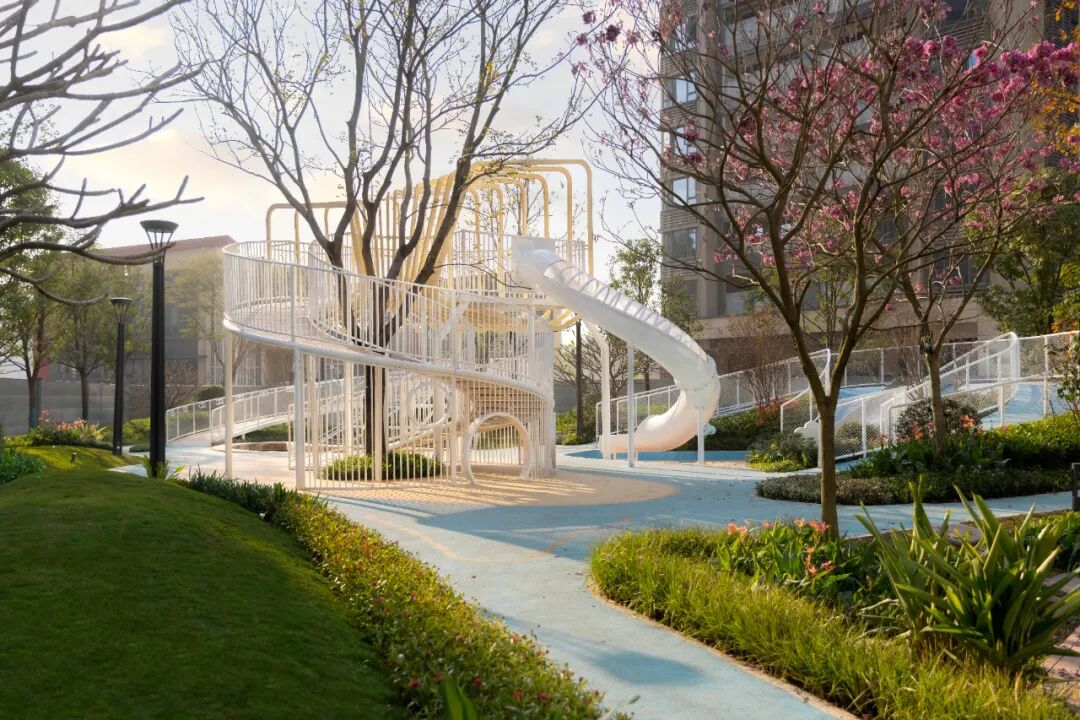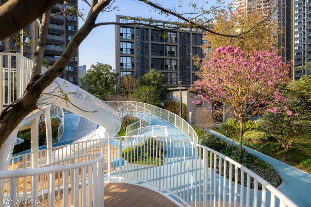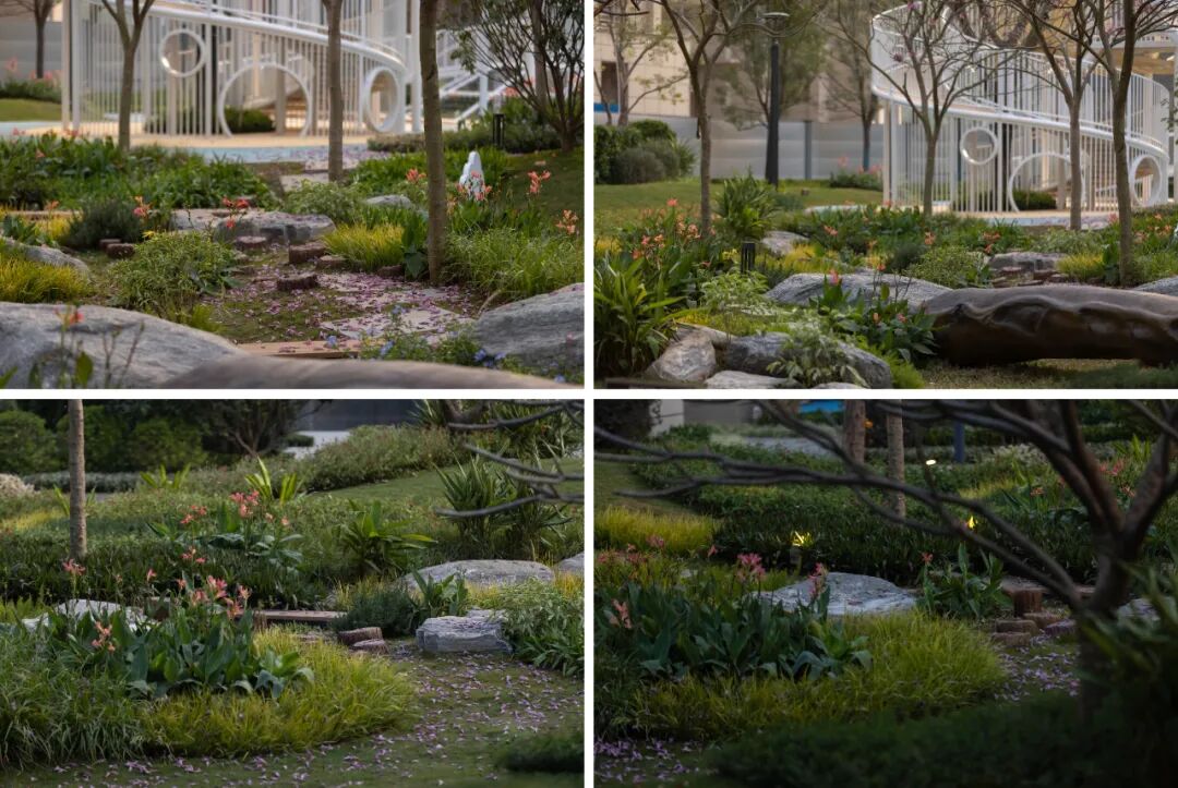 通往童乐天地则需要穿过花境,通过植物错落搭配与园路的交错延伸,制造出不断变化的视觉体验,穿行其中时而幽深,时而开阔,让归家的经历变成了一层一层逐步解开好奇心的体验之旅。