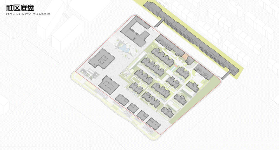 在高层的底层设置了架空层,社区架空层为社区居民提供了无风雨的活动场地,使得活动不受天气的影响,并且赋予一定的功能,在底层打造一个社区交流共享的空间,提升了整个社区的居住品质。