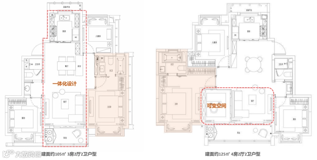 建面约125㎡是可变3+1房,约6m超大面宽客厅,多元实用功能,灵活舒适;U型厨房设计,人性化合理动线设计,宽敞实用;超大主次卧一线朝南,采光充足;主卧舒适独立套房,保障私密与便捷。