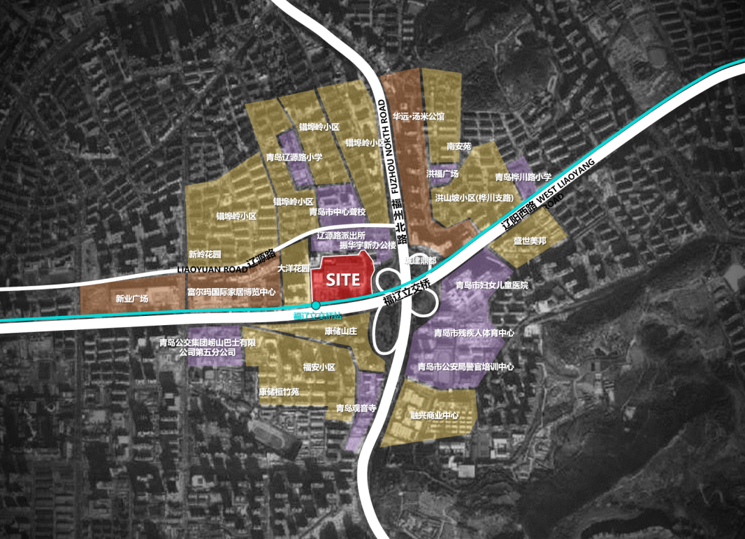 中铁诺德逸安居项目位于青岛市市北区辽阳西路和福州北路交叉口西北侧,作为城市更新项目,周边商场、医院等配套设施较为完善;地块内还规划有商业综合体、办公楼、住宅等业态。地块紧邻福辽立交桥,南侧有地铁4号线,交通便利,人流量较大。